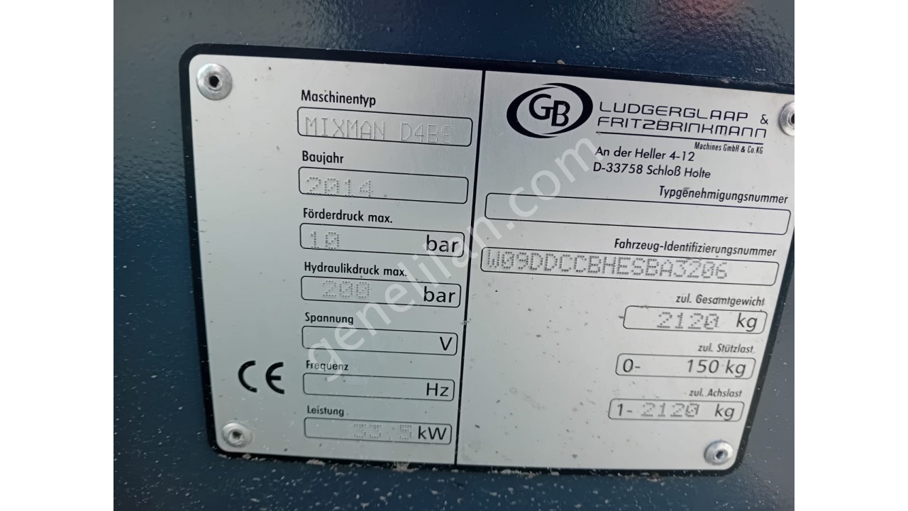 GB MİXMAN D4 BS 2014 Şap Makinası - Istanbul Antrepo Teslim (Türkiye'ye 2. el makina satışı yasaktır.)